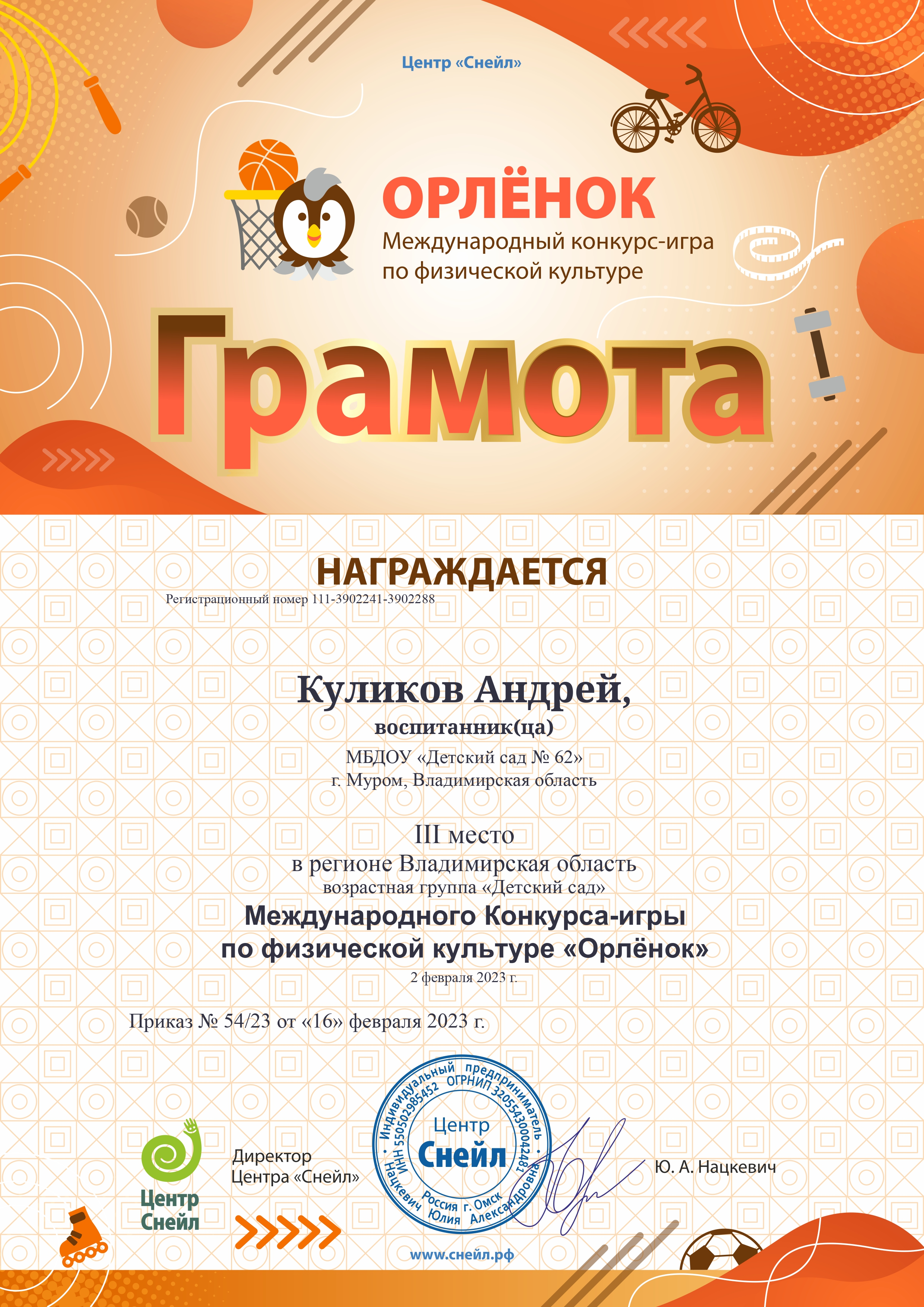 участие в Международном Конкурсе - игре по физической культуре «Орлёнок»,
