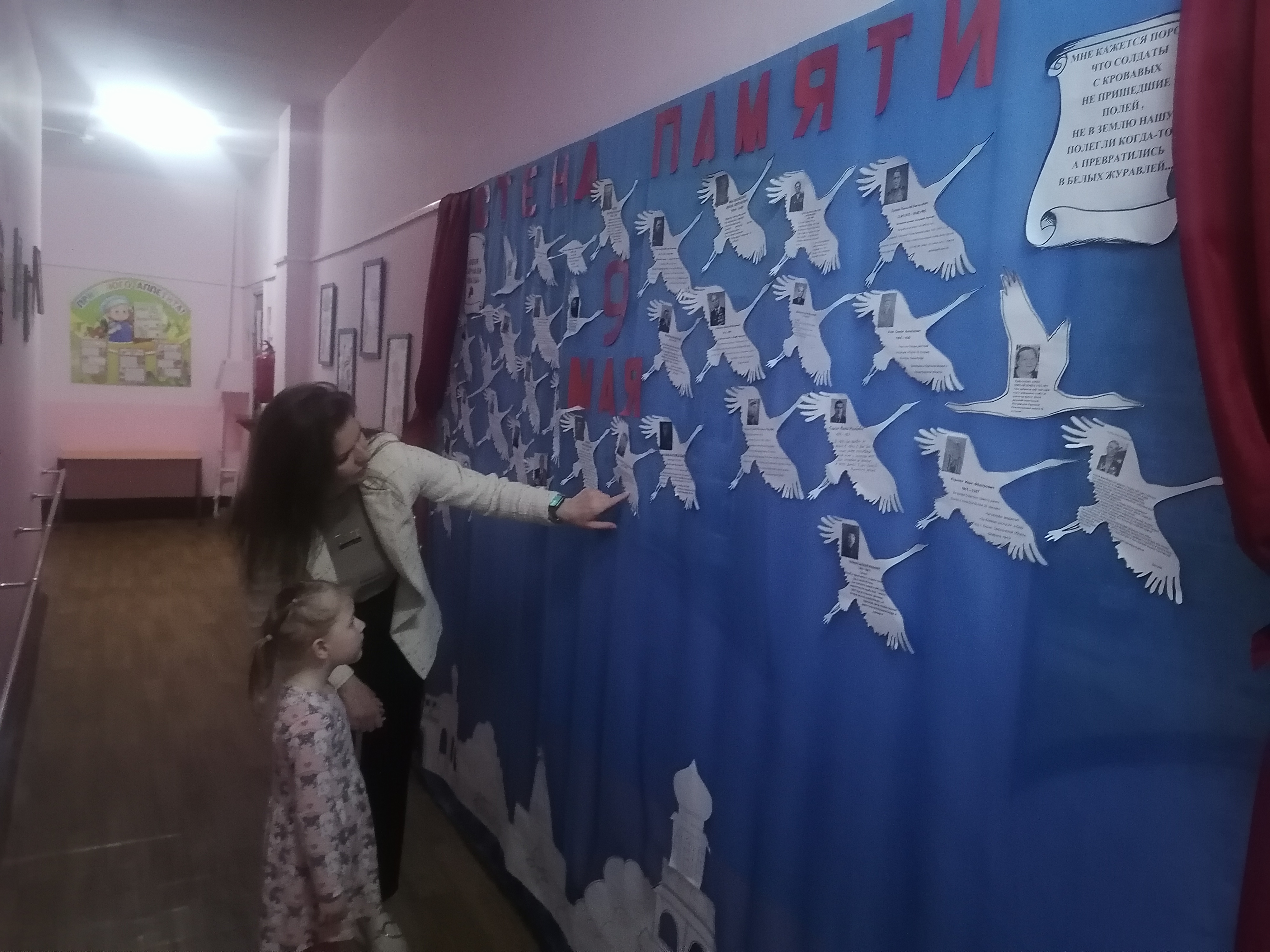 В преддверии Дня Победы в нашем детском саду организована патриотическая акция "Журавли Победы". В России журавль-символ добра, памяти и скорби. Память о защитниках отечества передаётся из поколения в поколение. И для того, чтобы не прервать эту цепочку, мы, сохраняя добрую традицию, создали "Стену памяти", где журавли на своих крыльях несут бессмертный полк, как память об участниках Великой Отечественной войны.