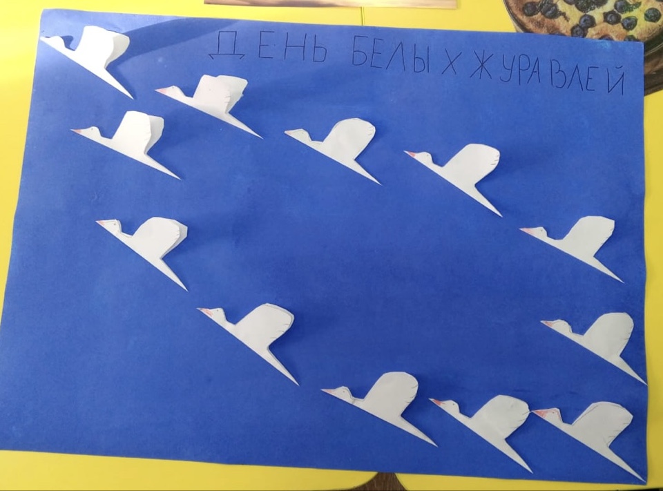 В старшей группе «Звездочки» был проведен тематический день, посвященный этой дате. Ребята узнали, что праздник родился из песни известного поэта Расула Гамзатова «Журавли», узнали, почему именно белые журавли стали символом этого праздника, познакомились с историей японской девочки Садако.