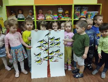 А после сна дети сделали коллективную аппликацию «Синички - зимующие птички». Совместная работа принесла дошколятам большую радость.