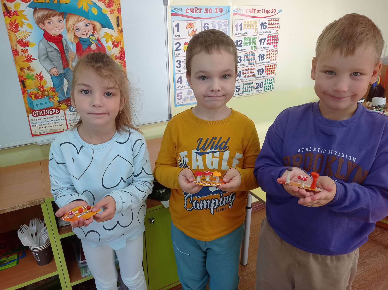 Для начала воспитанники группы №13 повторили названия съедобных и несъедобных грибов, вспомнили их внешний вид. Поговорили о вреде несъедобных грибов, о том, что человек может отравиться употребив их в пищу, но так же мы вспомнили, что нельзя уничтожать несъедобные грибы, так как ими питаются некоторые животные. А потом, дошкольники решили создать свою полянку, на которой будут расти только съедобные грибы.